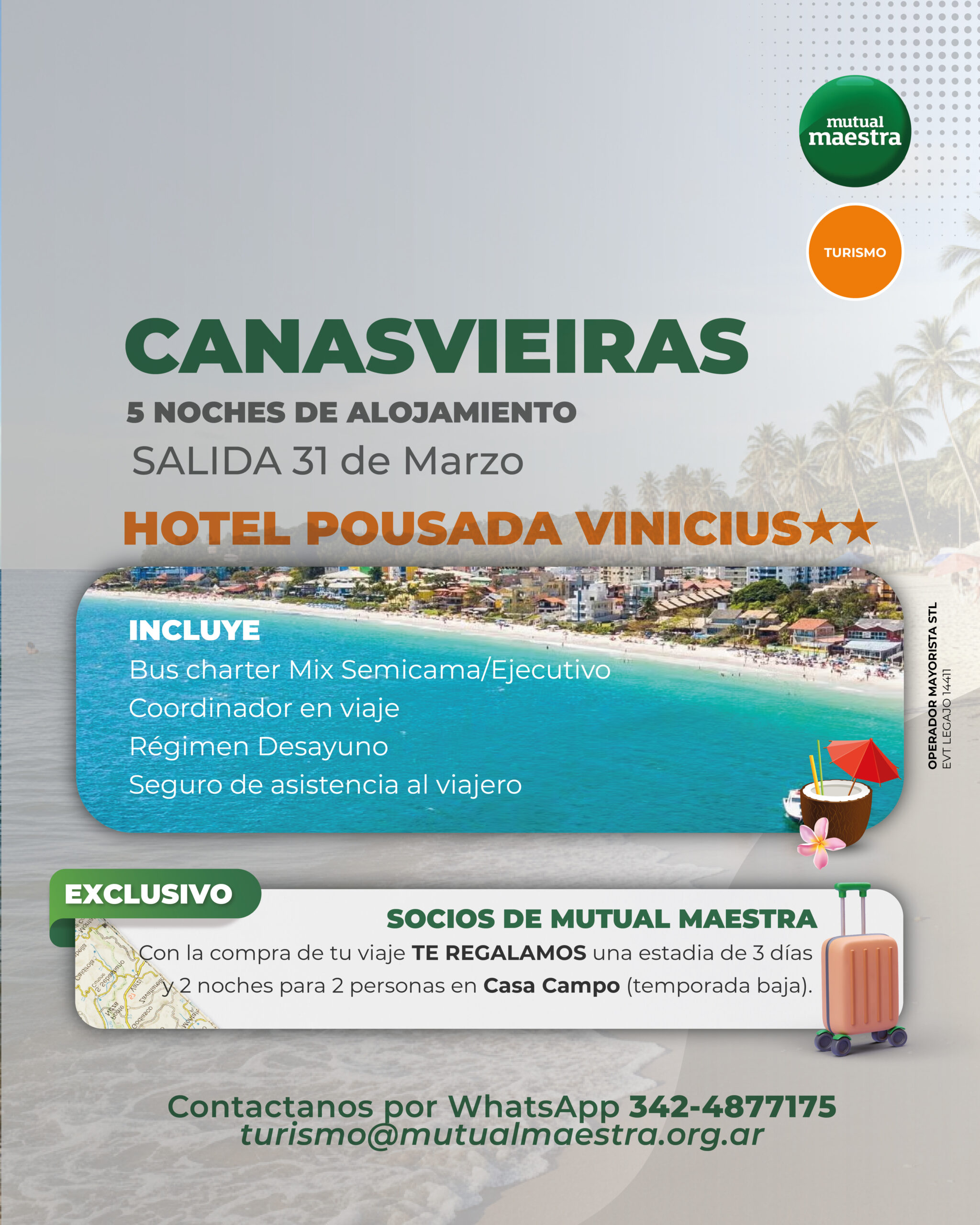 BASE DOBLE: $715.200 -BASE TRIPLE: $655.600 -BASE CUADRUPLE: $625.800 – BASE SINGLE: $998.300