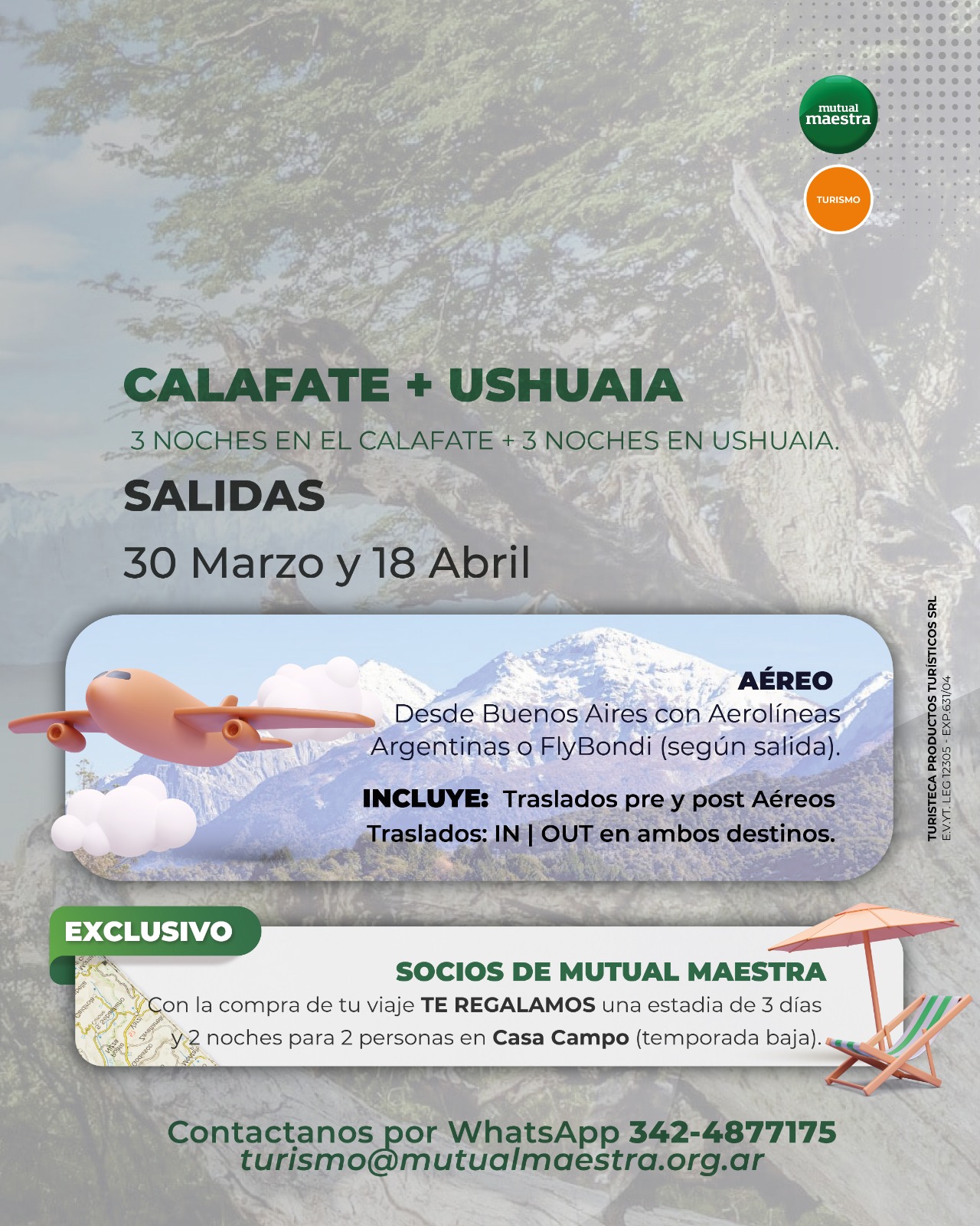 Desde Mutual Maestra te acercamos la posibilidad de vivir este viaje único con propuestas pensadas para que solo te ocupes de disfrutar. Una experiencia que combina dos joyas de la Patagonia argentina, con el respaldo institucional, asesoramiento personalizado y la tranquilidad de viajar acompañado por una entidad que siempre está cerca de sus asociados. Consultá en Mutual Maestra y empezá a planificar tu próxima gran aventura al sur del país.