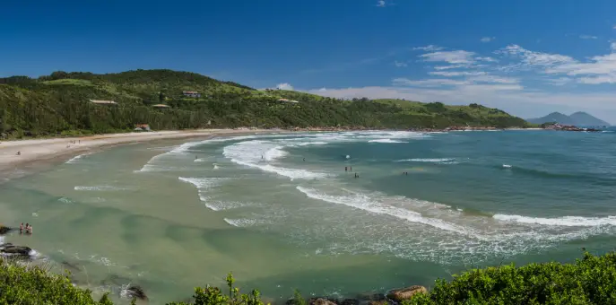 Durante Semana Santa en Garopaba, sus playas se destacan por su belleza natural, aguas limpias y extensos arenales, ideales para caminatas, descanso y actividades al aire libre. Es un destino muy valorado por familias, parejas y amantes del turismo tranquilo, que priorizan la calma, los paisajes y una experiencia más auténtica del litoral brasileño.