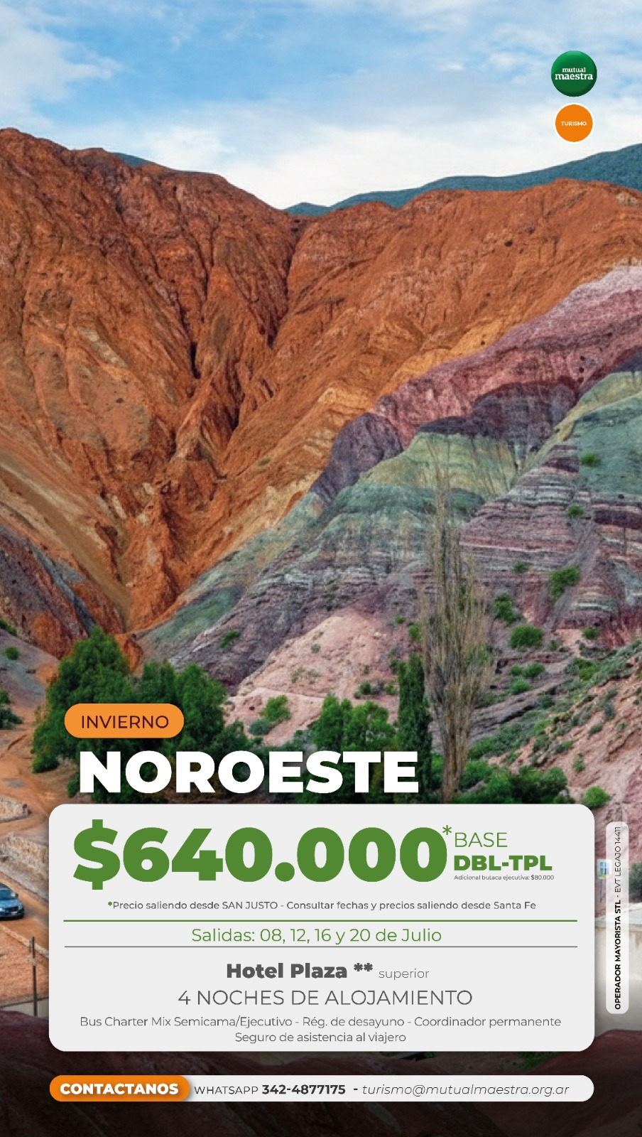 EMBARQUE B:Hotel Plaza ★★ Superior BASE: Doble/Triple — $640.000// Cuádruple — $610.000// Single — $880.000