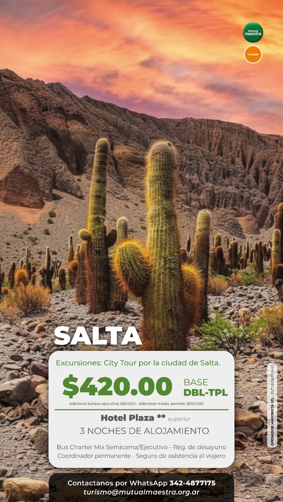 • BASE: Doble/ Triple — $420.000// Cuádruple — $395.000// Single — $650.000