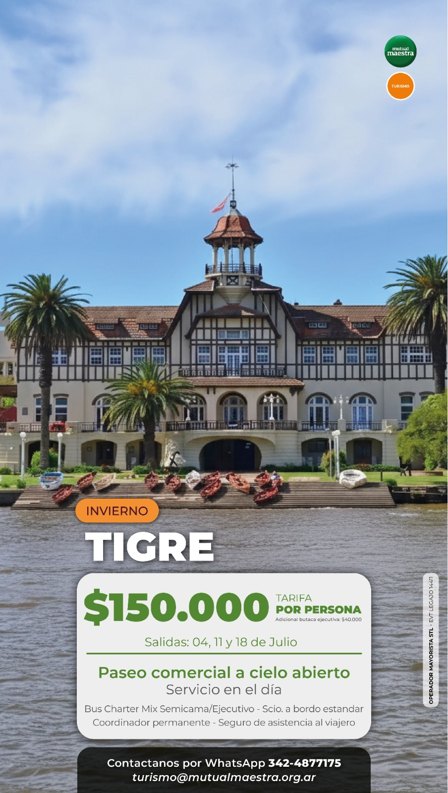 Paseo por los 5 Ríos del Delta: Un recorrido ideal para descubrir el Delta del Tigre navegando por sus principales ríos. Durante una hora podrás ver clubes de remo, el Parque de la Costa, el Museo de Arte de Tigre, el Museo Sarmiento y más. Al final, conocerás la vida cotidiana en las islas. Precio por persona: $20.000 (valor referencial).