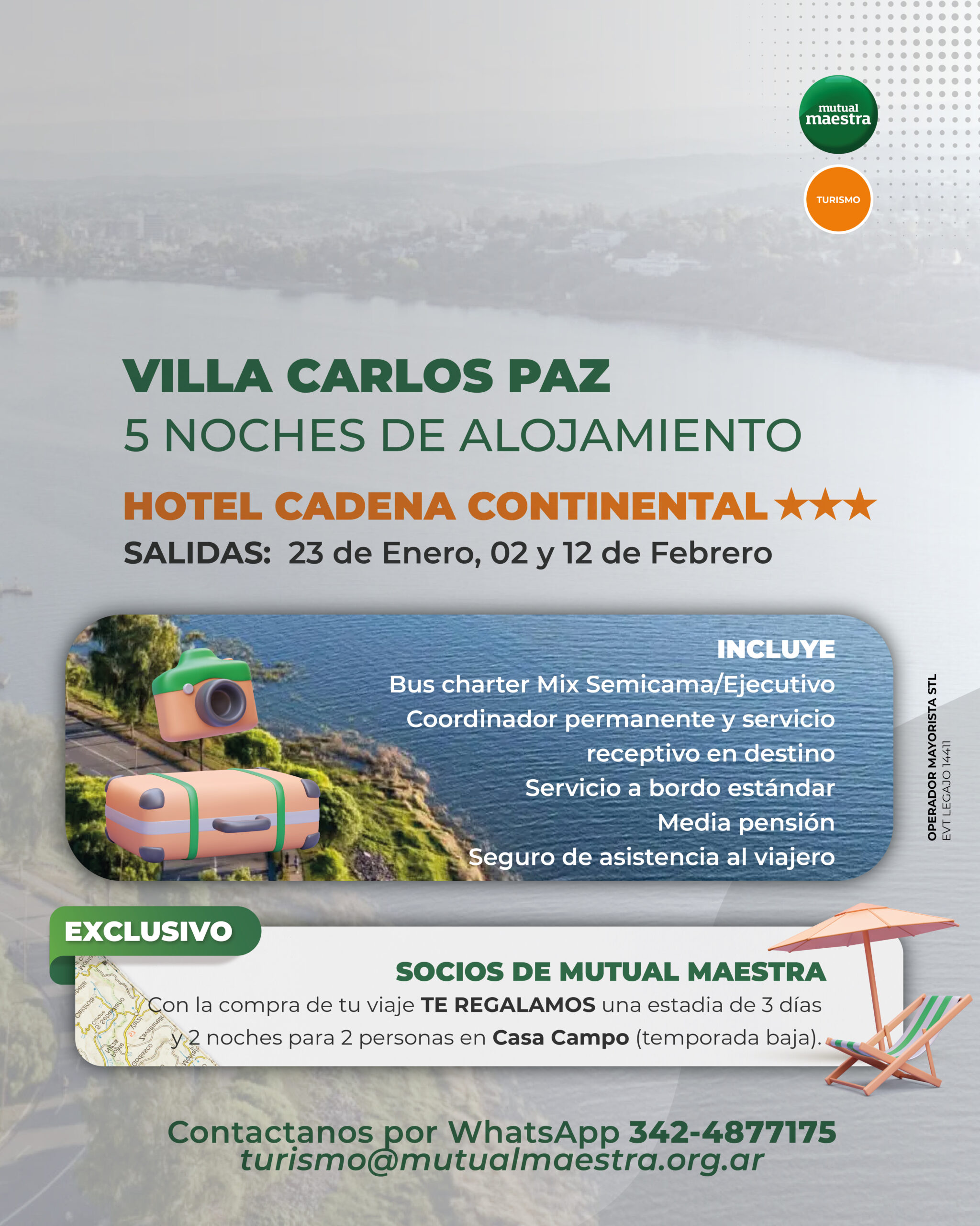 Ubicada a pocos kilómetros de la ciudad de Córdoba, Villa Carlos Paz es el destino turístico más visitado de la provincia y un clásico de las vacaciones argentinas.